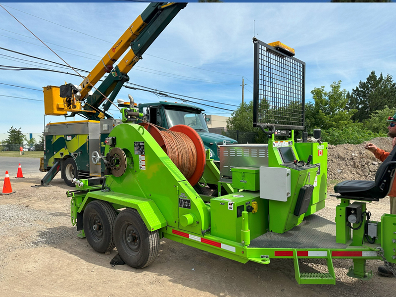 Home /Industries/Electric Power & Utilities/Distribution Equipment/Puller/Tensioners for Distribution Puller/Tensioners for distribution conductor stringing Timberland puller/tensioners with closed loop control systems are renowned for superior operator control. We also offer the only all-electric “green machine” puller/tensioner in the industry. Our full line of puller/tensioners is the most extensive in the industry, providing models for single conductor up to 6 and 8 bundle projects in both bullwheel and drum types. ModelContinuous LinepullBullwheel DimensionV-Groove Puller/TensionersPTV60-54 Puller/Tensioner5000 lbs2268 kginches: 54mm: 1371PTV 100-72 Puller / Tensionerlbs: 10,000kg: 4536inches: 72mm: 1664TRVBW-PT-10-72 V-Groovelbs: 10000kg: 4535inches: 72mm: 1828Drum Puller Puller/TensionersDPT30 Puller/Tensionerlbs: 6000kg: 2722inches: 72mm: 1828DPT40B Puller/Tensionerlbs: 10,000kg: 4,535inches: 72mm: 1828DPT40E Puller/Tensionerlbs: 6000kg: 2722inches: 72mm: 1828DPT50B Puller/Tensionerlbs: 5000kg: 2269inches: 56mm: 1422DPT60 Puller/Tensionerlbs: 6100kg: 2766inches: 72mm: 1828 Home /Industries/Electric Power & Utilities/Distribution Equipment/Puller/Tensioners for Distribution