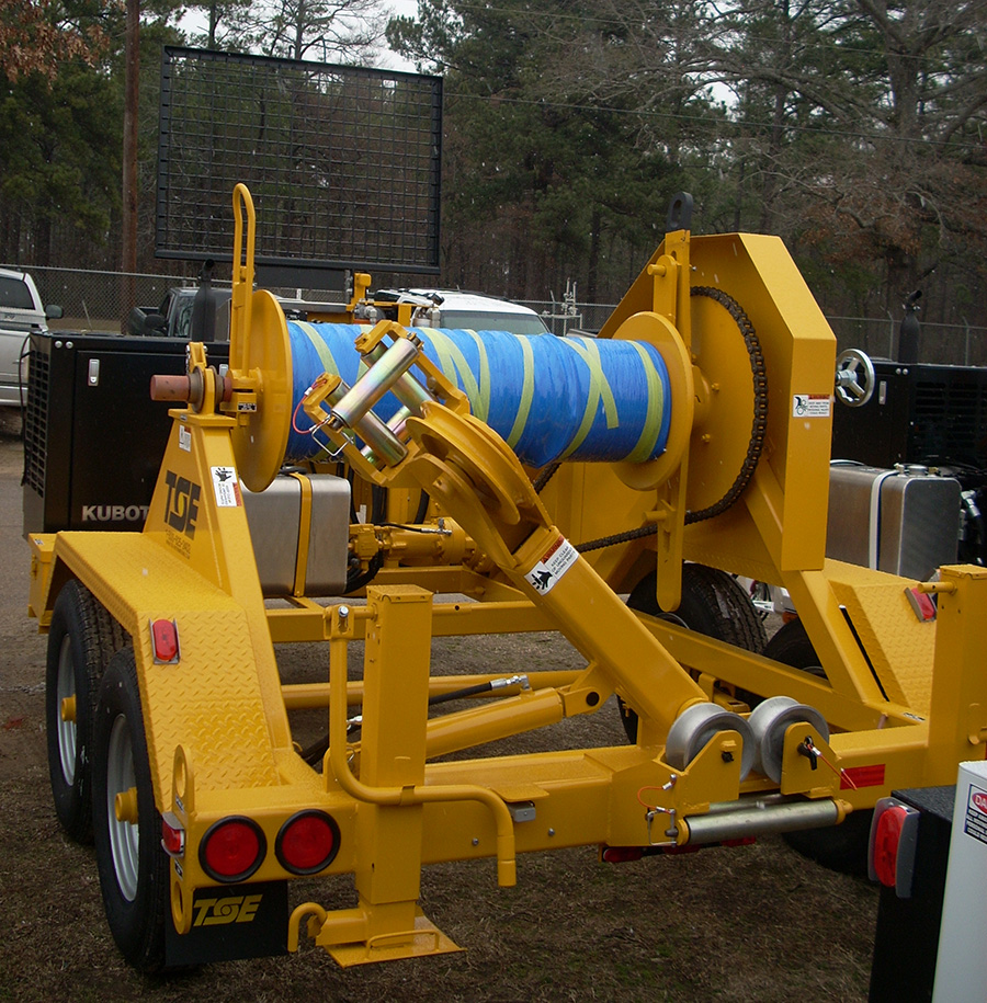 Rated for 7,000 lbs. linepull, the underground pulling reel can be ordered complete with 3/8” x 1,500’ of rotation resistant wire rope installed.
