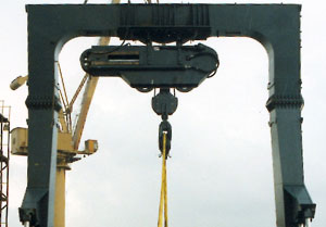 | 50 Ton capacity A-Frame -50 Ton capacity A-Frame with 115 degrees of motion and 49 ft. (14.9 m) height to bottom of cross head. - Unit is complete with a Passive Motion Compensator |