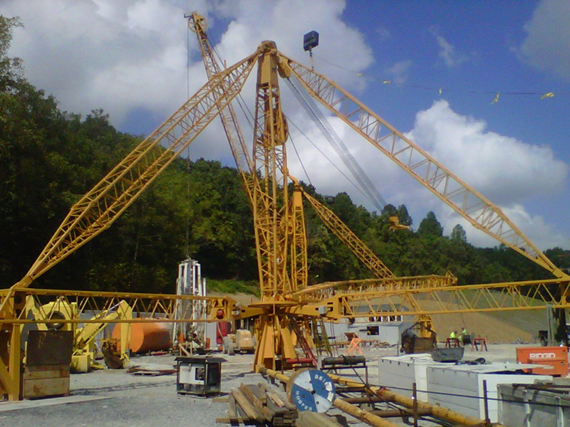 Timberland stiffleg derricks (and associated double drum hoists) are used for mine shaft construction and mine maintenance projects.