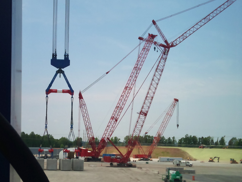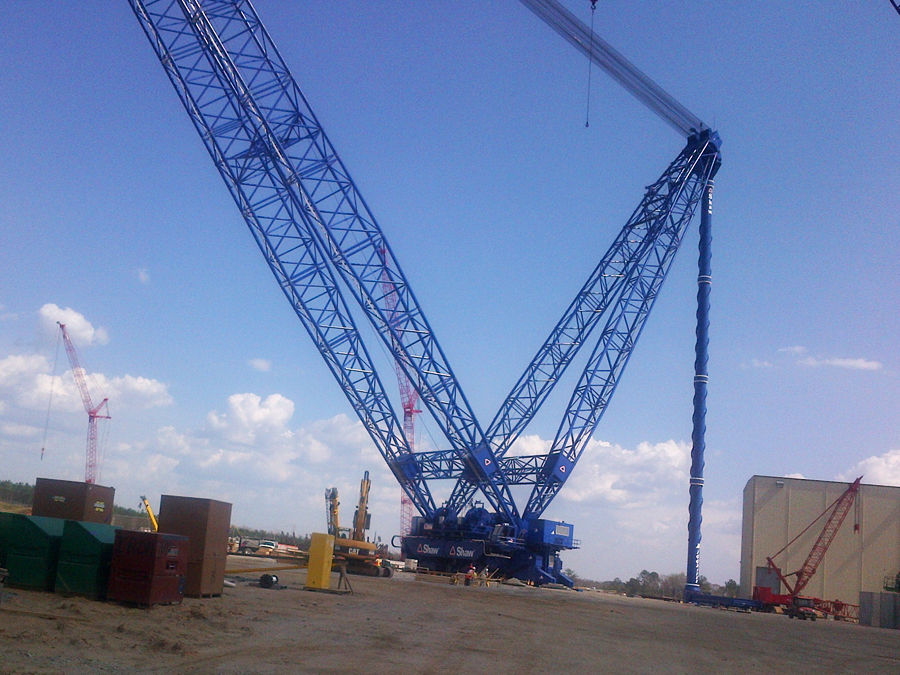 This included: • 8 x 75-Ton Traction Winches • 8 x Reel Winders • 4 x 950 hp HPU’s with synchronized control system • 32 x Slewing Trucks, 4 x Load Blocks, 2 x Tension Tie Tops | Synchronized Through Timberland Programing The world’s largest ringer derrick of this type, this project required two complete sets of equipment from Timberland for a pair of heavy-lift derricks. The derricks were used in the construction of two new nuclear power plants in the states of Georgia and South Carolina, USA. All hoists are synchronized through Timberland’s proprietary PLC program to maintain even loading of the boom structure.
