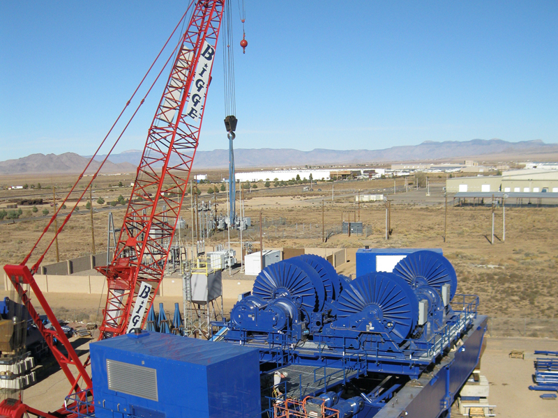 | Offshore Vessel Construction And Assembly Timberland supplied all the hoisting equipment for the world’s largest land-based heavy lift device at the Kiewit facility in Corpus Christi, Texas, USA. Its hoists, reel winders, hydraulic power units and control system are all synchronized to ensure that the booms remain evenly loaded over lengths of rope exceeding 10,000 ft. (3000 m) under strict safety guidelines. The system is an essential component in the final assembly of offshore oil and gas platforms.
