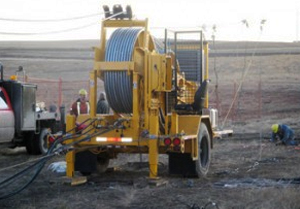 Project: Timberland Equipment was required to supply a 7.5 ton tensioner, four powered reel stands, 48 two-bundle stringing blocks and a running board for McGregor Construction to erect transmission lines near Edmonton, Alberta.