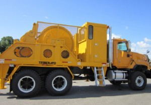 The design of the trailer-mounted puller tensioner had to provide for towing the system at highway speed with hydraulic surge brakes and highway lighting. Timberland was also required to provide one week of Spanish-language training for operators and service technicians.