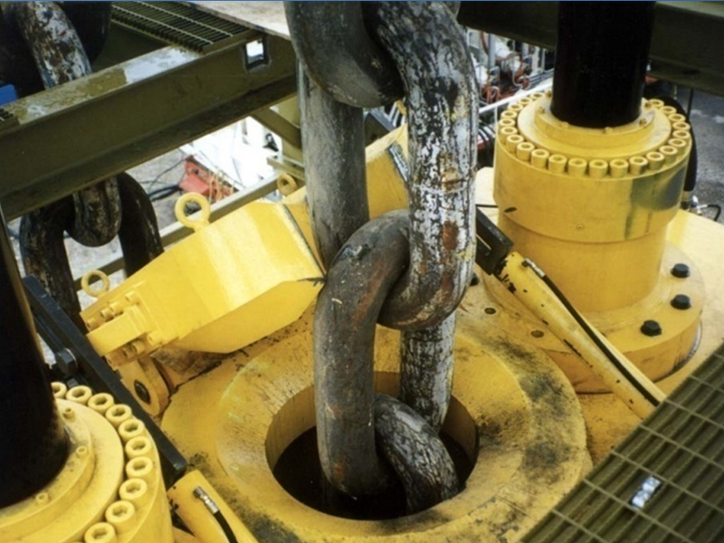 Terra Nova is located off the coast of Newfoundland and is a turret moored FPSO with a single chain jack. This is the world’s largest chain jack utilizing 7” (178 mm) chain (each chain link is 42” (1068 mm) in height.